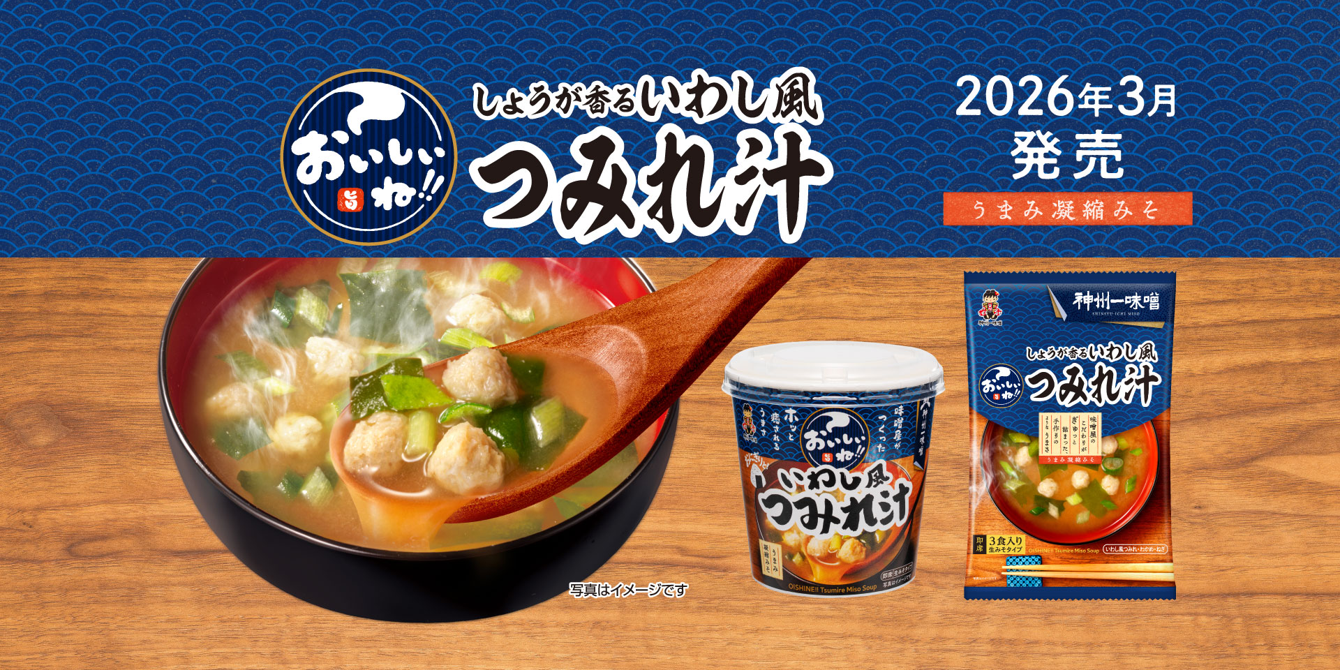 神州一味噌 即席みそ汁『おいしいね‼ いわし風つみれ汁』『おいしいね‼ しょうが香るいわし風つみれ汁 3食』2026年3月 新発売!